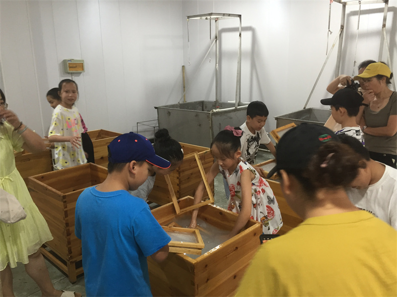 2021年8月28日,暑假的結(jié)尾,再來一波研學(xué)體驗(yàn),小朋友們學(xué)習(xí)如何撈紙,在實(shí)踐中體驗(yàn)紙的生產(chǎn)不易,學(xué)會珍惜愛護(hù)用紙