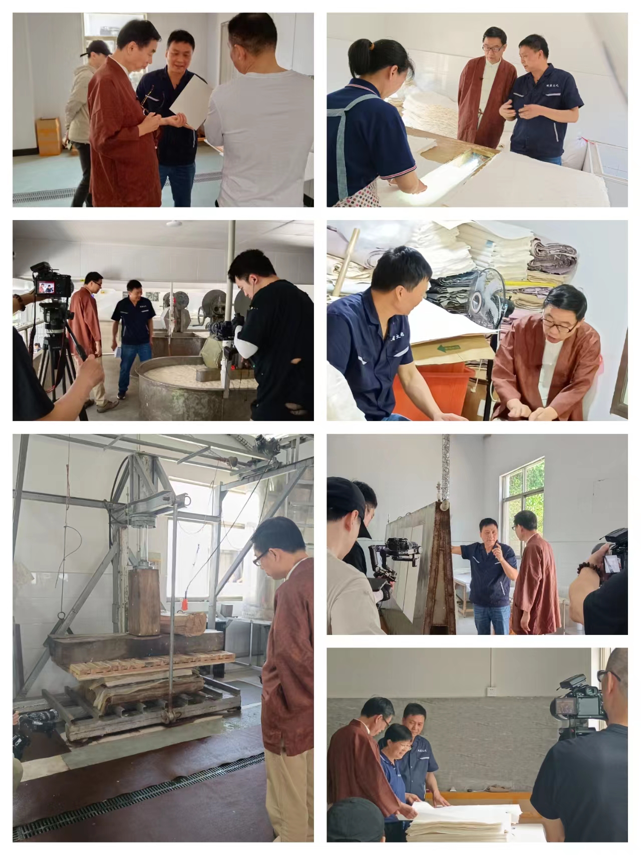 在黃山市凝霜文化發(fā)展有限公司,欄目攝制組全程記錄徽州楮皮紙第二代傳承人、非遺傳承人朱建新的徽州楮皮紙制作技藝。《文化大觀園》總策劃、主持人王魯湘詳細了解徽州楮皮紙的優(yōu)勢,制作的傳承和發(fā)展,并與徽州楮皮紙第二代傳承人朱建新面對面暢聊古法造紙和新技的結合。